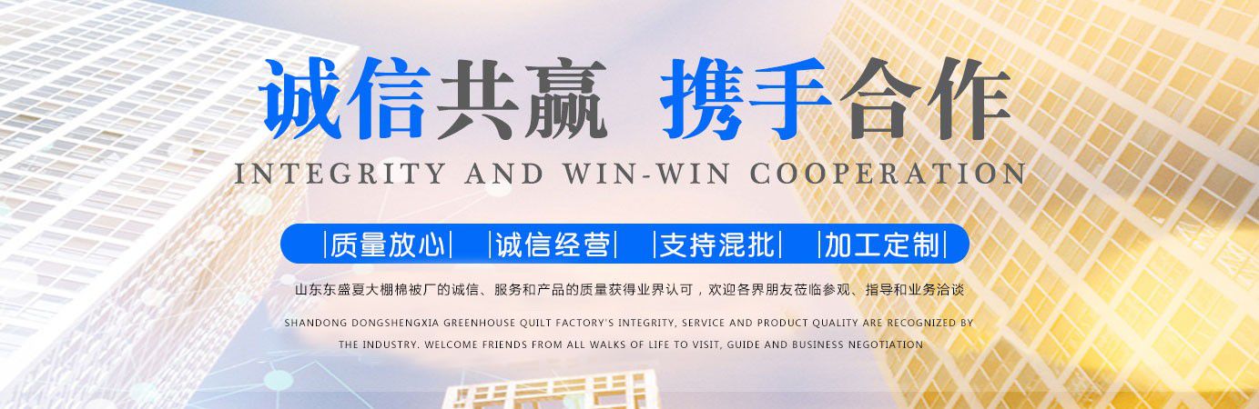 山東東盛夏大棚棉被廠是專門從事大棚棉被,大棚保溫棉被,蔬菜大棚棉被,溫室大棚棉被,防水大棚棉被,大棚棉被廠家等產品生產的企業。公司擁有專業的設計、生產和銷售團隊,并運用先進的科學技術和現代化管理手段為廣大客戶提供優質的產品和服務。 公司致力于提高溫室產品質量和農業保溫材料裝備水平,努力推進溫室產品技術進步和實現現代高效農業。 公司竭誠為廣大用戶提供優質的產品和貼心的服務,您的需求就是我們的目標。 立足現在、展望未來在當今全球經濟一體化進程中充滿了機遇和挑戰。公司將不斷開拓、創新、完善自己。 “誠信、求實、開拓、創新”是我公司的企業精神。 為了能通過科技的力量為客戶生產一個品質靠得住的大棚保溫被,我們以“聆聽客戶心聲、追求卓越品質”作為我們企業的質量方針;以“每天前進一步,真誠服務”作為我們企業的服務宗旨;以“打造優秀團隊,鑄就一流品質”作為我們企業的經營理念。我們通過堅守質量、服務與理念,成就讓視界更精彩的事業。 在前沿目標上,我們堅持做到目光長遠、思想創新、行動堅定,建立企業精神文化,讓全體員工擁有共同的信仰和目標,并且為之奮斗拼搏。同時,我們內心坦誠,言出必行,信守承諾,因為誠信是我們最重要的無形資產。...